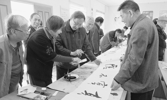 4月19日,上海奉贤区老年书画协会相关人员专程到嵊州,与嵊州市老年书画研究会进行友好对接活动。双方书画高手面对面进行书法美术作品的交流,增进了两地老年书画会员的友谊与合作。 (记者张亮宗摄)