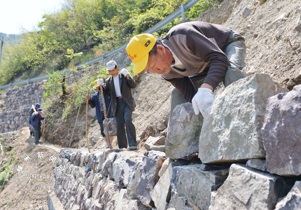 水毁修复工程是惠民实事工程,今年来我市已安排专项资金确保该工程顺利实施。图为下王镇高山村易塌方路段加固现场。