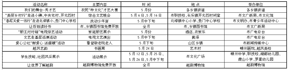 5月份文化惠民服务活动预告表