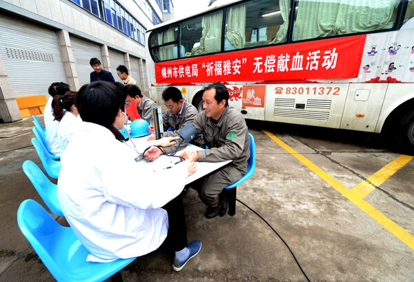 4月23日下午,嵊州市供电局组织开展“祈福雅安”无偿献血活动,号召全体员工发扬一方有难、八方支援的优良传统,充分体现“诚信、责任、创新、奉献”的企业核心价值观,彰显“责任”央企形象。