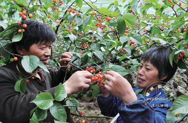 樱桃火红,陈亦龙再次尝到了当一个农庄主的喜悦。昨日,记者与朋友驱车去他的基地——仙岩镇新岩头村。一条曲曲弯弯的山道盘旋而上,水泥浇筑的山道虽然陡峭,但路面光洁。“致富路通到高山上,我开发效益农业的信心更足了。”陈亦龙说,现在他的农业基地已扩大到50亩。30多亩的美国樱桃,10多亩的花木与竹笋,还有几亩零星的本地樱桃与猕猴桃。