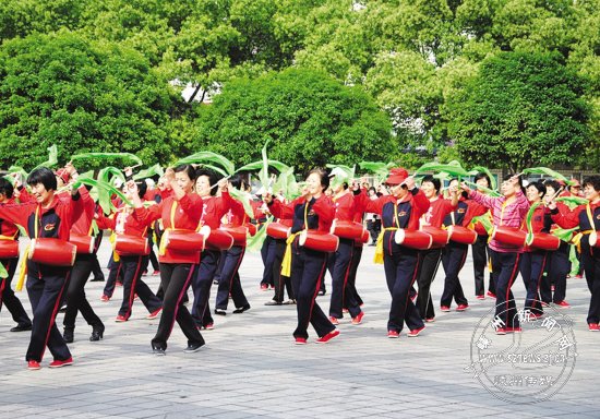 4月28日,市老年腰鼓协会在市区中心广场举行活动,庆祝“五一”国际劳动节。300多名会员排着整齐的方阵,敲出阵阵悦耳的鼓声,展现了我市老年人的精神风貌,吸引了市民驻足观看。