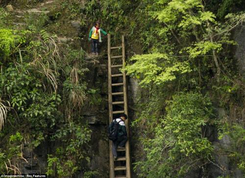 《每日邮报》指出,这个仅有100户人家的山村几乎与世隔绝,只有一条条天梯将它与外界连接起来。山村的孩子们每天只能通过爬上垂直90度、且没有安全保障的天梯才能去镇上的学校读书。虽然道路崎岖危险,下面是七八十米深的悬崖,但如果想要接受教育,天梯是孩子们上学的必经之路,就连5岁上学前班的孩子也要爬梯子。因此,当孩子们准备去附近镇子上上学,他们首先需要学习的就是如何爬梯。