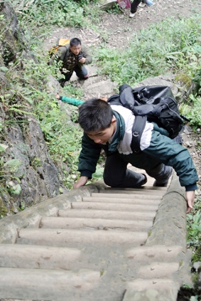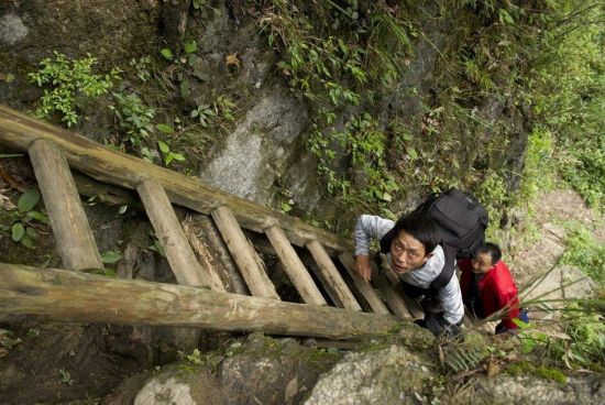 中国乡村孩子每天爬天梯上学的消息引起广泛关注。