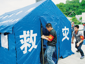 为了增强防灾减灾意识,普及防灾救灾常识,提升防灾减灾应急能力,昨天上午,市民政局组织全市各县(市、区)60名民政系统工作人员和60名志愿者,进行了应急救灾物资调运使用演练。在搭帐篷的过程中,嵊州组仅用了3分多钟时间便搭起了一顶避灾帐篷。据悉,再过几天就是5月12日全国防灾减灾日,作为防灾减灾宣传周系列活动,民政部门还将组织绍兴市市属学校应急疏散演练等多种宣传活动。 (裴金红 张君燕 文/摄)