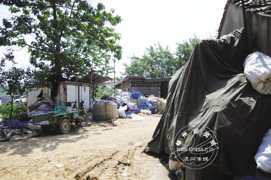 三界大桥建设工地西岸有一违法建筑废品收购站
