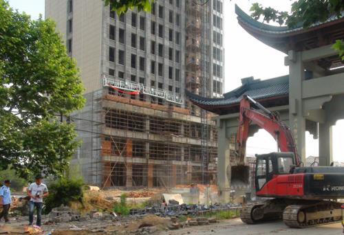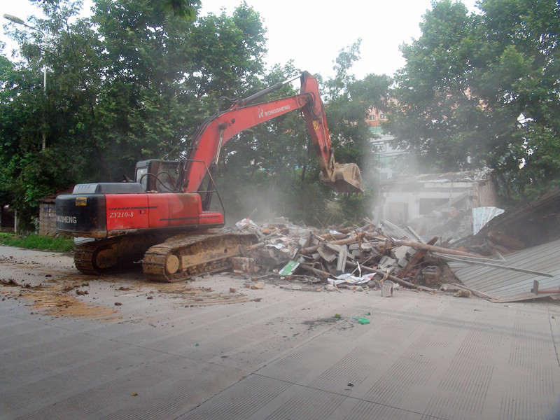 5月25日上午,我镇联合国土、公安、供电、交警等部门多方力量,组织大型机械,对东牌坊地段北侧典型违法建设依法实施强制拆除。