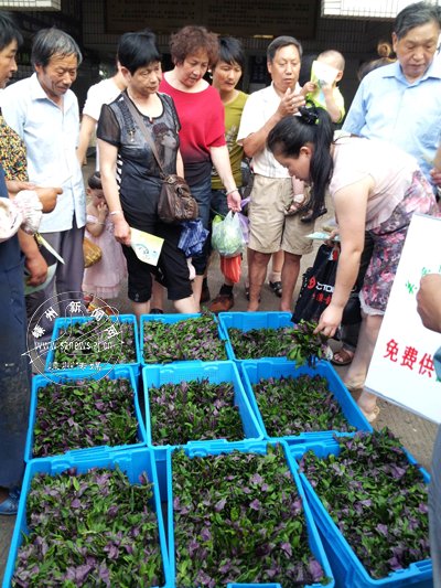 昨日傍晚,我市健而康生态果蔬葛根专业合作社负责人张春华,将9大筐紫背菜运到江滨市场,赠送给广大市民品尝(如图)。健而康合作社目前已经在崇仁等地试种了200多亩的紫背菜,主要供应杭州、绍兴等超市和大酒店。