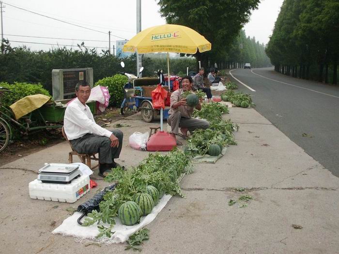 自5月下旬以来,当你来到仙黄公路前良路口地段,随时都可以看到一顶顶遮阳的大伞,在那伞下,放着刚从田里摘出来的一个个鲜活的大西瓜,吸引着南来北往的过客,有的下车后买上几个带回家;有的干脆停车,围着大伞吃个新鲜的……