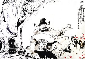 随后,尹向东还携同弟子与叶君萍一起创作了指画作品《好酒图》。