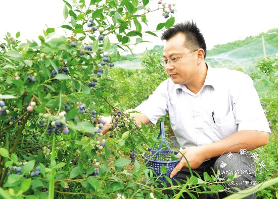 “健康、生态是人们追求的永恒主题,这块市场有潜力。”叶峰笃定地认为。在一次中国义乌国际森林产品博览会上,叶峰第一次接触“世界水果之王”蓝莓,得知蓝莓被国际粮农组织列入人类五大健康食品之一,叶峰惊喜地发现,这种水果正与自己的初衷相契合且经济价值可观。说干就干,2010年,他在黄泽镇白泥塘村承包近50亩土地,并从省农科所引进种植蓝莓系列品种。