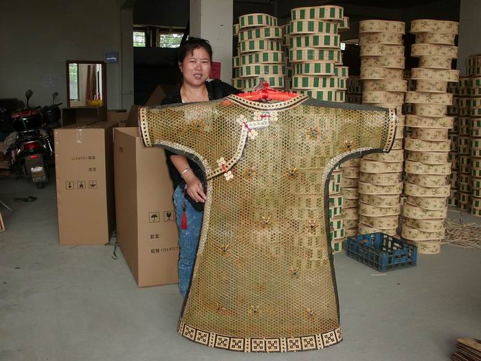 在前不久结束的第八届义乌文化文化用品博览会上,由嵊州市国森竹编吕建亚大师编制并选送的竹衣“为谁美丽”荣获第八届义乌文博会优秀奖。