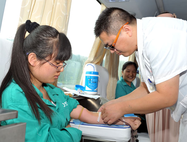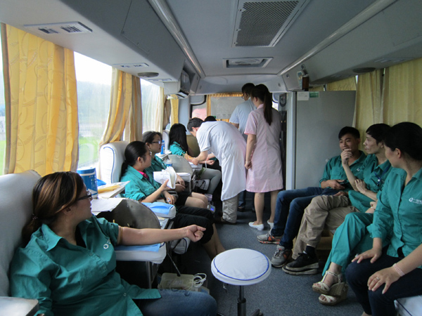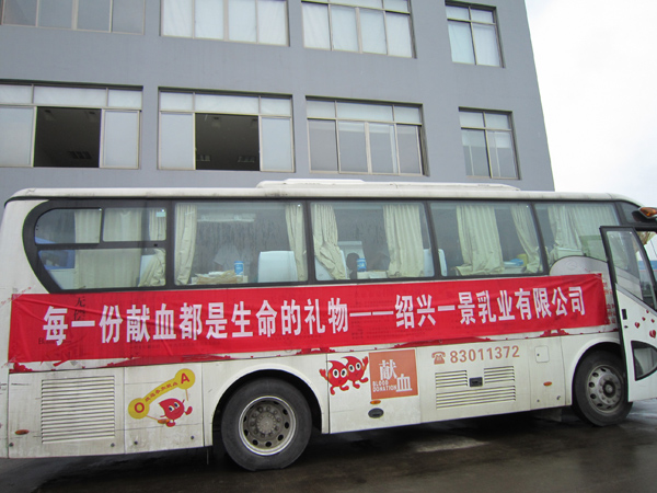 无偿献血大巴驶进绍兴一景乳业有限公司