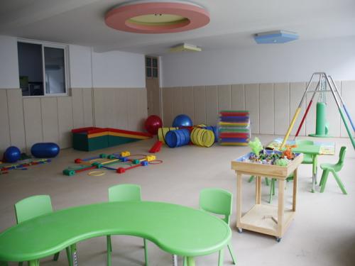 走进这个教室,第一感觉是仿佛进入了游戏场所,非常赏心悦目,有语言学习区,感统训练区,游戏活动区,心理辅导区,还有随手可拿的图书和玩具。