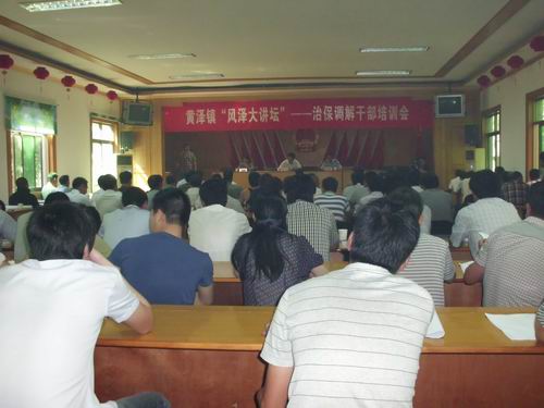 6月18日上午,黄泽镇举行了“泽风大讲坛”治保调解干部培训暨“网格化”管理组团式服务推进会。各村驻村指导员、行政村书记、治保调解主任及有关方面负责人参加了上午的大会。会上市公安局治安大队梁迪勇同志、司法局李小霞科长作了生动的辅导报告,市委政法委沈祖飞副书记对黄泽提出了殷切希望,镇党委王建勇书记作了重要讲话,并宣布成立了矛盾纠纷调解队、政策法律服务队、特殊群体帮教队、实用技术帮扶队、爱心志愿服务队、应急治安巡逻队等六支镇级组团式服务团队,会上还就在全镇范围内开展“网格化管理、组团式服务”工作,在新形势下提出了服务管理的新理念与新方法。