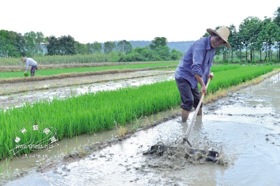 图为昨日三江街道忠铨村的农民在田间忙碌的场景。