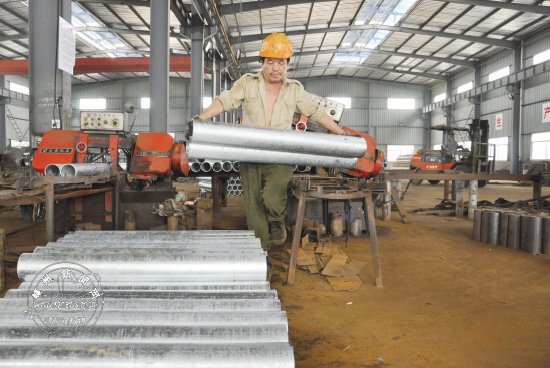 今年以来,浙江安泰交通设施有限公司等不少黄泽镇企业通过提升内部管理水平、加大科技创新力度、积极调整产品结构等方式实现了逆势增长。1-5月全镇实现规上工业产值5.92亿元,同比增长11.33%;工业性投资3.78亿元,同比增长18.8%。图为安泰公司生产车间一角。
