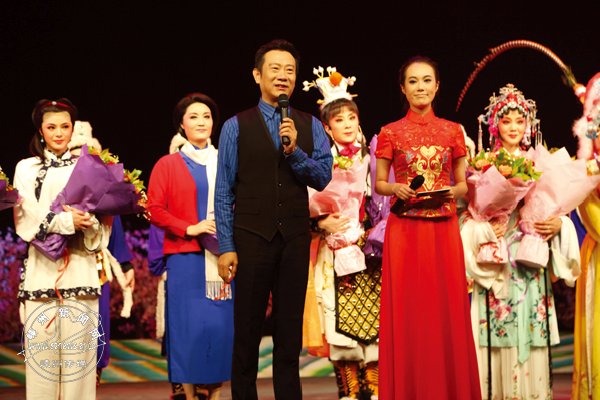 市委常委、宣传部长孙海荣与现场其他领导和专家在《越剧流派演唱会》结束后与演员合影。
