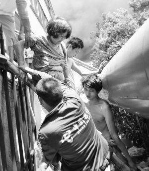 4日11时左右,嵊州市城北的浙江天发染整股份有限公司院子内,一个外贸服装加工车间起火,浓烟瞬间“封”住了员工生活宿舍的通道,情急之中,闻讯赶来的群众用施工竹梯架起救人通道,把被困楼内的12人顺利解救。