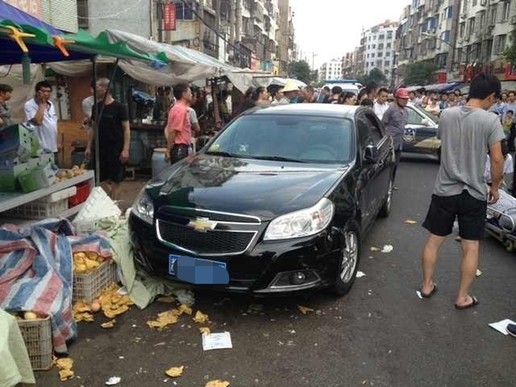悲剧发生在7月6日下午14时许,嵊州市三江街道四海路,烈日当空,正是一天中最热的时段。突然,路人发现一辆由东向西行驶的黑色雪弗兰小轿车失去控制,一头撞向一辆路边停靠的蓝色力帆牌小轿车后,又撞向另一侧路边的水果摊。直至轮胎掐住水果摊的水果篮,这辆雪弗兰才戛然停下。