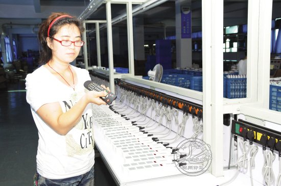 手指轻点普通的家用电视遥控器,多功能插座就瞬间断电。昨日下午,在浙江安卡电气有限公司的检测车间里,检测人员正在对排成长龙的多功能红外线遥控插座进行出厂前的“体检”。作为我市一家新兴科技型企业,安卡生产的多功能插座已经凭借安全、节能、健康的特点进入国内银行、电信、石化等特殊行业和普通家庭,成了市场上的抢手货。