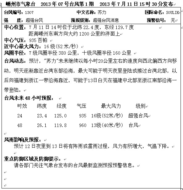 11日15时30分发布台风报告单