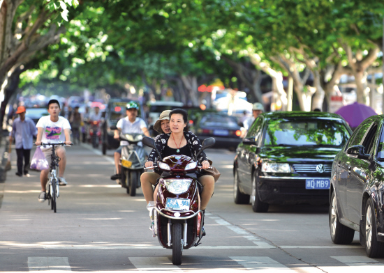 夏日炎炎,北直街两边的行道树枝繁叶茂,绿荫遮天蔽日。这样的景致如今已非常难得,这条林荫大道也因此成为许多市民眼中景色最美的街道。据悉,北直街上有法国梧桐树600棵左右,树龄基本在20年以上。