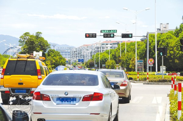 在单位时间内,左转车辆通行量低,一直是困扰我市交通状况的一个问题。为有效解决这个问题,我市首个左弯待转区近日在官河南路保罗洲际酒店路口投入使用。据悉,在直行绿灯放行的时候,左转车辆可进入左弯待转区等候,等到左转绿灯时,便可快速通过路口。