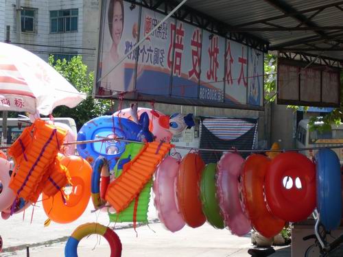 随着游泳人数的增多直接带动了游泳器具的销售,许多商家除了必备的泳衣,泳镜、救生圈、戏水用品比较热销外,卖得最火的就数儿童泳具,此外,在店门前显目地带适时推出的各类儿童泳具、消暑用品等颇受消费者青睐。