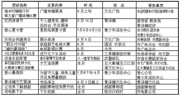 8月份文化惠民服务活动预告表