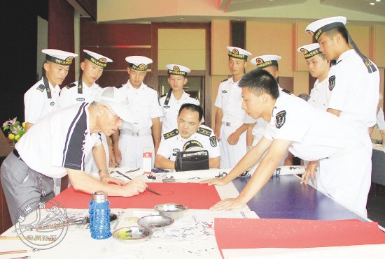 为庆祝即将到来的“八一”建军节,日前,我市老年书画研究会联合上虞市白马湖书画院到解放军某部,共为部队官兵写字、作画160多幅。送书送画活动,受到了部队官兵的热烈欢迎。