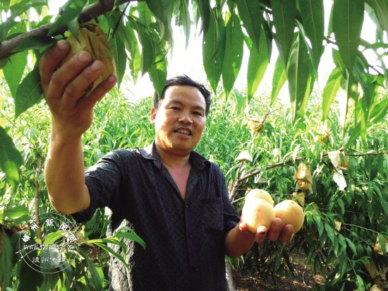 赵松庆的10多亩桃子基地是市新有机农业园的水果基地之一。赵松庆是养猪大户,饲养着300多头肉猪。相邻的上虞市章镇的果农经常到他的养猪场采购猪粪,种出来的水果汁多甜度高,赵松庆由此受到启发,于2010年承包了10多亩荒山地种植桃子。在市新有机农业园“绿色无公害”理念的引导下,经科学种植和无公害管理,获得了优质高产。