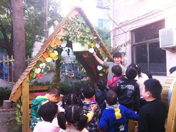 除了“爱心伞”,幼儿园里还有着一间间“爱心小屋”。过鲵老师在她的教育日记里写道:今天,我又一次经过“爱心小屋”,仔细地看着一张张五颜六色的小卡片,有的写了对亲人的关爱,有的写了对濒危动物的关心,有的写了呼吁保护环境……但有一张卡片却让我记忆犹新:这是一张淡绿色的爱心卡片,上面写着:“我是小二班的淇淇,因为妈妈每次很迟来接我,妈妈就在我的书包里放了很多好看的书,如果你也是晚接的小朋友,我们可以一起看书哦!”呵呵!真想去看看这位淇淇小朋友,因为,在很多孩子还停留在爱的祝福时,淇淇却已经付出了爱的行动,学会了分享和帮助别人,这真的让我特别感动。