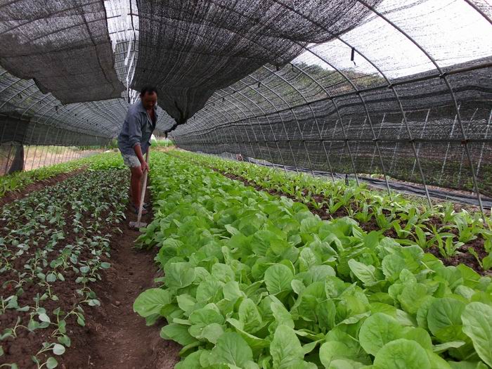笔者近日,来到了黄泽镇浙江省现代农业综合区以普安村为中心的蔬菜精品园,看到了这里有生长在遮阳大棚里,长势茂盛的多棚有机蔬菜。据现代农业园里的立强菜农说:“在长时间干旱的40度高温下,我能培育出如此茂盛有机蔬菜,靠的就是这些遮阳网,目前我头顶上有三层遮阳网,现在网外气温是约40度,而在网内却在26度左右,每罩一层约能降低4至5度温度,很适宜蔬菜生长,当然,光靠遮阳还不够,还得及时施肥与浇水。目前,我们这些蔬菜拿到市场上去特别受到广大消费者的青睐,价钱也不错,有每公斤10元左右。”是的,在这史无前例的高温夏季里,就是这些现代设施农业,保障了城镇居民的新鲜蔬菜供应。现代农业不但为广大菜农旱涝保收,而且更是为广大城镇居民提供无公害食品供应的最好保障。