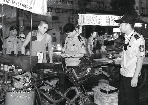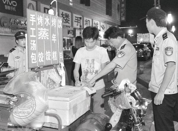 晚上10点,记者跟随城管执法车,前往嵊州大道与官河横路交界处,此时马路已被十几个夜宵摊“占领”,路面尽是遗留的食物残渣、纸巾、烧烤棍。出租车司机戴石永告诉记者,他开了两年的出租车,几乎每晚经过这一路口,都能看到这些无证夜宵摊。在整治现场,城管队员逐一劝说夜宵经营户,要求他们撤除摊点。“执法很文明,我们自己有错。”摊贩薛峰来自江苏,开夜宵摊一年多了,他说,自己也知道在这个路口摆摊影响交通,但觉得这里生意比较好,还是侥幸放在这里。执法过程中,一些摊主也纷纷表示,今后一定在划定范围内经营,不给城市交通添堵。