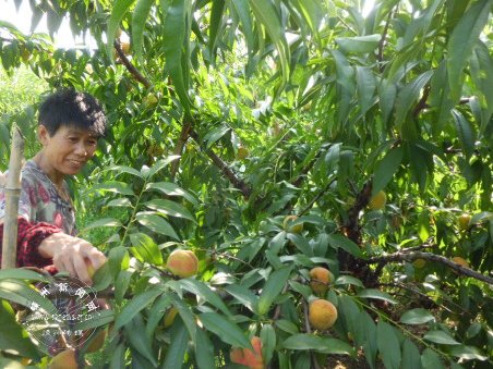 这几天,三界镇八郑村水果种植大户郑亚江全家出动,还请了5个帮工,每天忙着摘桃。郑亚江说,他种植了10多亩锦绣黄桃,收益不错,但今年持续干旱高温,导致果树干枯,桃子大量落地,起码要减产五成左右,如不抓紧时间采摘、销售,损失会更大。