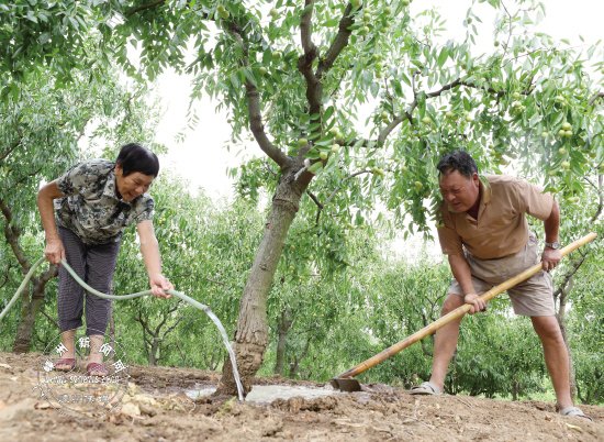 昨日傍晚,在温泉旅游度假区湖村桥村西湖自然村,71岁的李林洋夫妇忙着给枣树浇水。李林洋种了20亩枣树,他采取在果树周围挖沟浇灌方式,在保证枣树能喝上水的同时又不浪费水资源。经过精心管理,他种植的脆枣已于8月10上市,脆枣采摘游在每公斤30元左右,在大旱天还是获得了较好的收成。