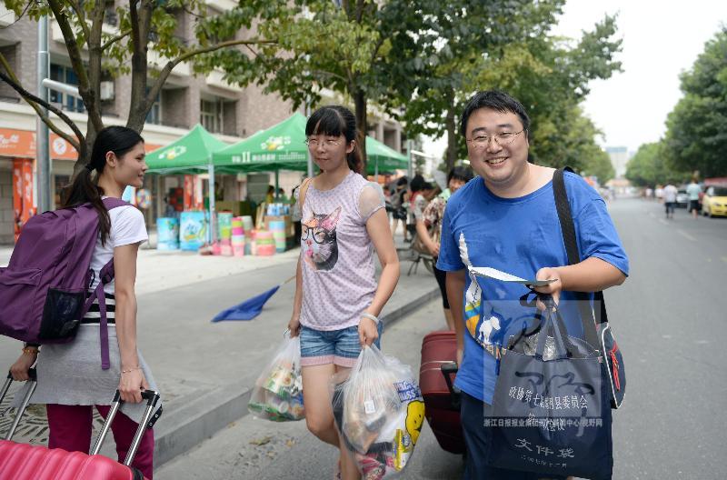浙江在线08月19日讯 (浙江日报记者李震宇通讯员尹炳炎摄)8月18日,浙江大学2013级本科新生开始陆续报到。在紫金港校区,来自全国各地的新生或家长陪同,或独自成行,在志愿者的帮助下完成入住、交费等手续,正式成为浙江大学学子。据悉,该校今年将有5880位新生入学报到。