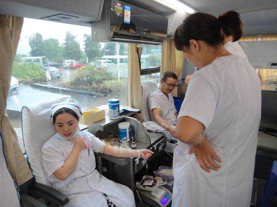 8月22日上午8:30,长乐镇中心卫生院待献血职工在等待着市人民医院献血车的到来,至10:30结束时了解到:共体检19人,合格献血人员17人。医生说:“合格率之高实属少见,超额完成了献血任务。