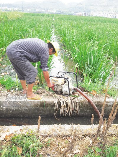 8月22日,鹿山街道江夏村茭白种植大户汪江宁正在关闭茭白田里的水泵。今年夏季以来的高温干旱天气,使江夏村的茭白种植受到不小影响,汪江宁在他的300亩茭白田里安装了8台水泵,24小时抽水灌溉,连续抗旱已有20多天。台风“潭美”带来的降雨,使旱情得到缓解,汪江宁终于松了一口气。据了解,秋茭将于9月中旬上市,受干旱影响,江夏村的秋茭产量将减少三分之一以上。