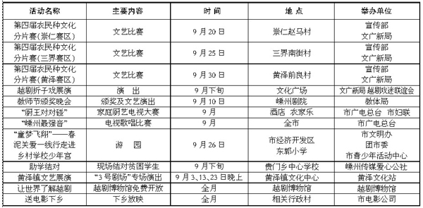 9月份文化惠民服务活动预告表
