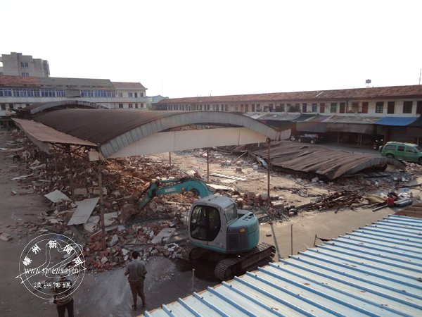 在甘霖镇农贸市场一侧,出现了一大块空地(如图)。据工作人员介绍,这里是市场的一部分,原来都搭着钢棚,前段时间镇里开展农贸市场拆迁改造项目,这些钢棚已被拆除。