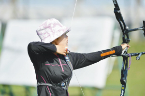 今天沈阳的柏叶射箭训练基地风和日丽,气温是14.8℃,风力一级,这对选手在室外进行的项目发挥十分有利。参加的选手一共有64名,在之前的个人排名赛中,王南星位列第22位,进入残酷的淘汰赛。根据规则,她首先和位列第43的天津选手李丽媛对阵,采取五轮三胜制,谁赢就进入下一轮。如果夺得冠军的话,一共要经过6轮的比赛。