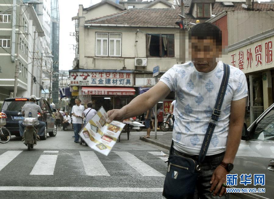 9月5日,一名“黄牛”在福州路上向过往的行人吆喝回收月饼票。