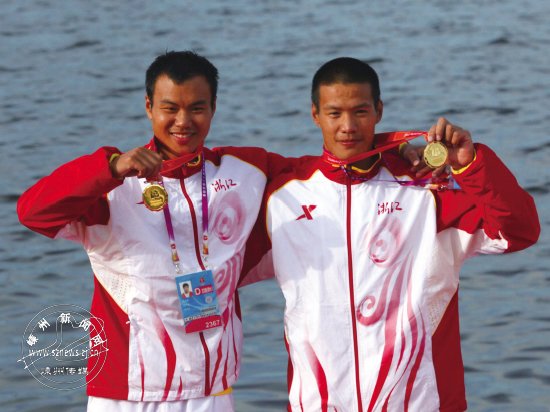 好消息再次从辽宁大连传来:昨天下午,在第十二届全运会男子双人200米皮艇项目决赛中,我市运动员周海赛和队友、来自绍兴县的孙新昌合作险胜江西运动员,为浙江代表团夺得皮划艇项目的唯一一块金牌。这是我市运动员在本届全运会中夺得的第二块金牌,同时也是我市历史上的第二金。