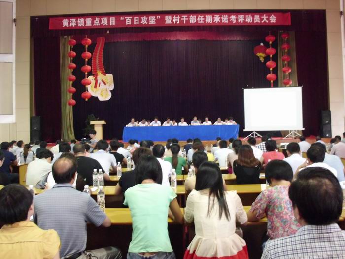 为重点项目强势推进,顺利推进成黄泽镇内世纪大道的拆建等民心工程的实施,进一步营造干事创业氛围,全面推进我镇各项重点工作、重点项目。9月24日上午,黄泽镇召开了由全体机关干部、大学生村官、各行政村书记、主任、社长及规上企业负责人参加的“百日攻坚”暨村干部任期承诺考评动员大会。市委常委郑法根同志到会并作重要讲话。