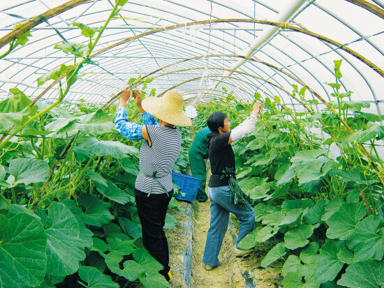 昨日,嵊州飞翼生态农业有限公司现代农业园基地的职工正在南瓜大棚绑扎瓜藤,这批有机农产品将直供上海市场。近年来,嵊州发展现代农业方兴未艾,绿城现代农业综合体、飞翼生态农业有限公司等一批现代农业基地纷纷落户嵊州,为传统农业插上腾飞的翅膀。