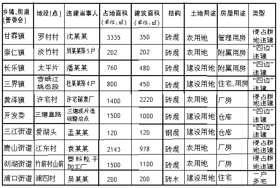 10月份“十大违建典型”汇总表