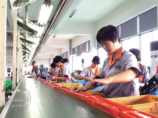 在全球工具制造业不景气的大背景下,浙江三鼎工具有限公司通过“事事讲究方法技术、时时寻求效率进步”练好内功,不断进行质量体系培训、劳动技能竞赛等活动,在强化自身素质、提高业务技能方面下工夫,产销依然“一枝独秀”,前不久,还荣膺首批中国工具名牌企业称号。图为该公司包装车间一角。