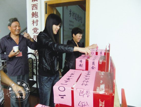 昨日是我市村委会换届选举试点仙岩镇的首个选举日,仙岩镇第一批9个村举行村委会换届选举,由村民投票选举产生新一届村民委员会。另外9个村也将在10月13日举行村委会换届选举。图为西鲍村村民投票现场。
